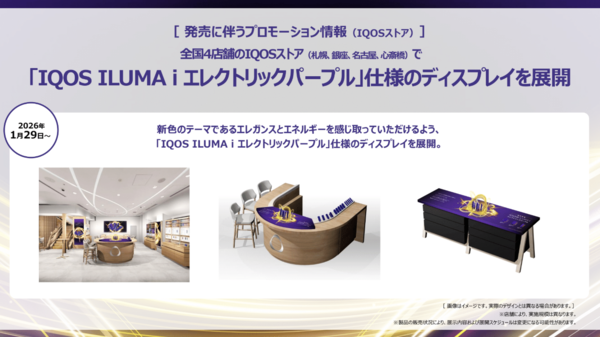全国4店舗IQOS ストアでIQOS ILUMA i エレクトリックパープル仕様のディスプレイを展開