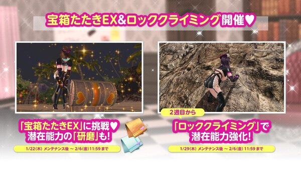 2026年1月29日メンテナンス後から開催のイベント後半では、集めたイベント限定アイテムを使って「ロッククライミング」に挑戦しよう。最後まで登り切ると、女の子の「潜在能力」がレベルアップする。