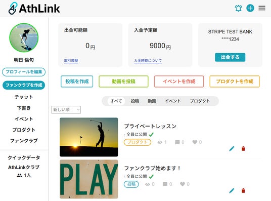 月額ファンクラブ×月額スポンサー×販売でアスリートの収益化を支援する「AthLink」提供開始