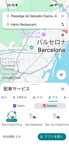 またGoogleマップが、ライドシェアや配車アプリと連携している地域も多くあります。その場合、Googleマップでルート検索をして、そこからアプリを起動すれば、目的地も入力されるので、より簡単です。