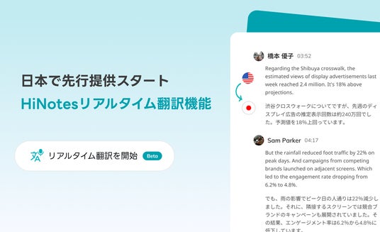 オーディオハードウェア企業 HiDock LLC (本社:米国デラウェア、代表:Sean Song、以下HiDock) は、12月21日(日)から日本国内で先行提供をしていた専用アプリ HiNotesのリアルタイム翻訳機能 (ベータ版) を、グローバルでも提供開始しました。