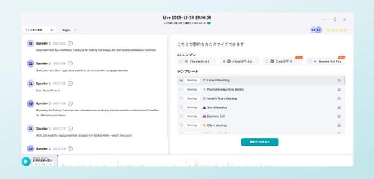 4. 会話が終わったら、好みのテンプレートと AI エンジンを選んで、瞬時に要約を生成できます。