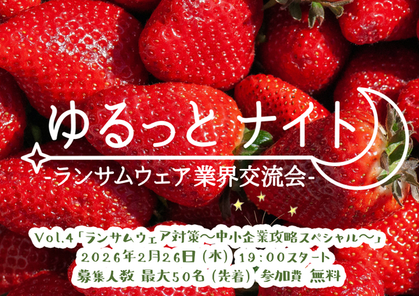 今回は、企業の情報システム部でソリューション導入にかかわっているご担当者をゲスト(後日公開予定)としてお招きし、参加者の皆様と、中小企業向けのランサムウェア対策ソリューション導入について、情報交換・交流を実施します。