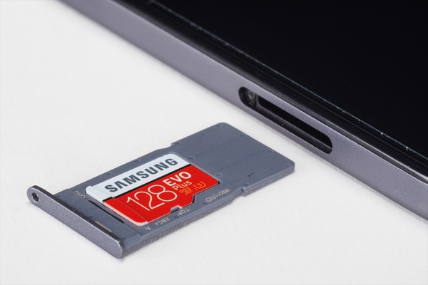 そして実は便利な点が、microSDカードへの対応です。本体のストレージ(128GB)が一杯になっても、市販のカードを差し込めば、写真や動画、ダウンロードした映画などをさらに保存できます。