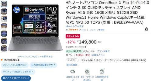 【Amazonスマイルセール】HP 14型ノートPC「OmniBook X Flip 14-fk(B9EE2PA-AAAA)」をチェック!