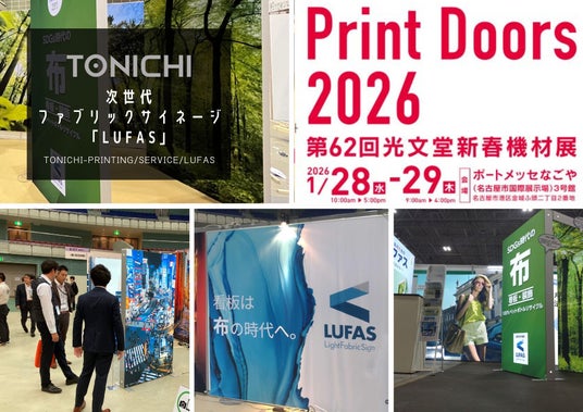 世界最大級の新聞印刷会社、東日印刷株式会社(本社:東京都江東区、社長:西川光昭、以下TONICHI)は、2026年1月28日(水)~29日(木)の2日間、名古屋市国際展示場ポートメッセなごや3号館で開催される「PRINT DOORS 2026 第62回新春機材展」に出展いたします 。展示会では、TONICHIで製造・販売している日本で唯一エコマーク取得のファブリックサイネージ(布看板)「LUFAS(ルーファス)」をご紹介します 。