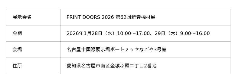 「PRINT DOORS2026 第62回新春機材展」開催概要