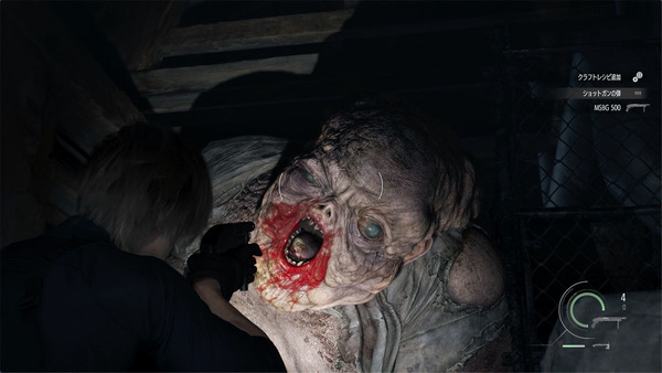 レオンパートでは、まるで赤ちゃんが巨大化したようなボスとの戦いを体験できた。戦うマップには細い通路があったり、上層に登れるハシゴがあったりしたので、そういったところを利用して戦っていこう。