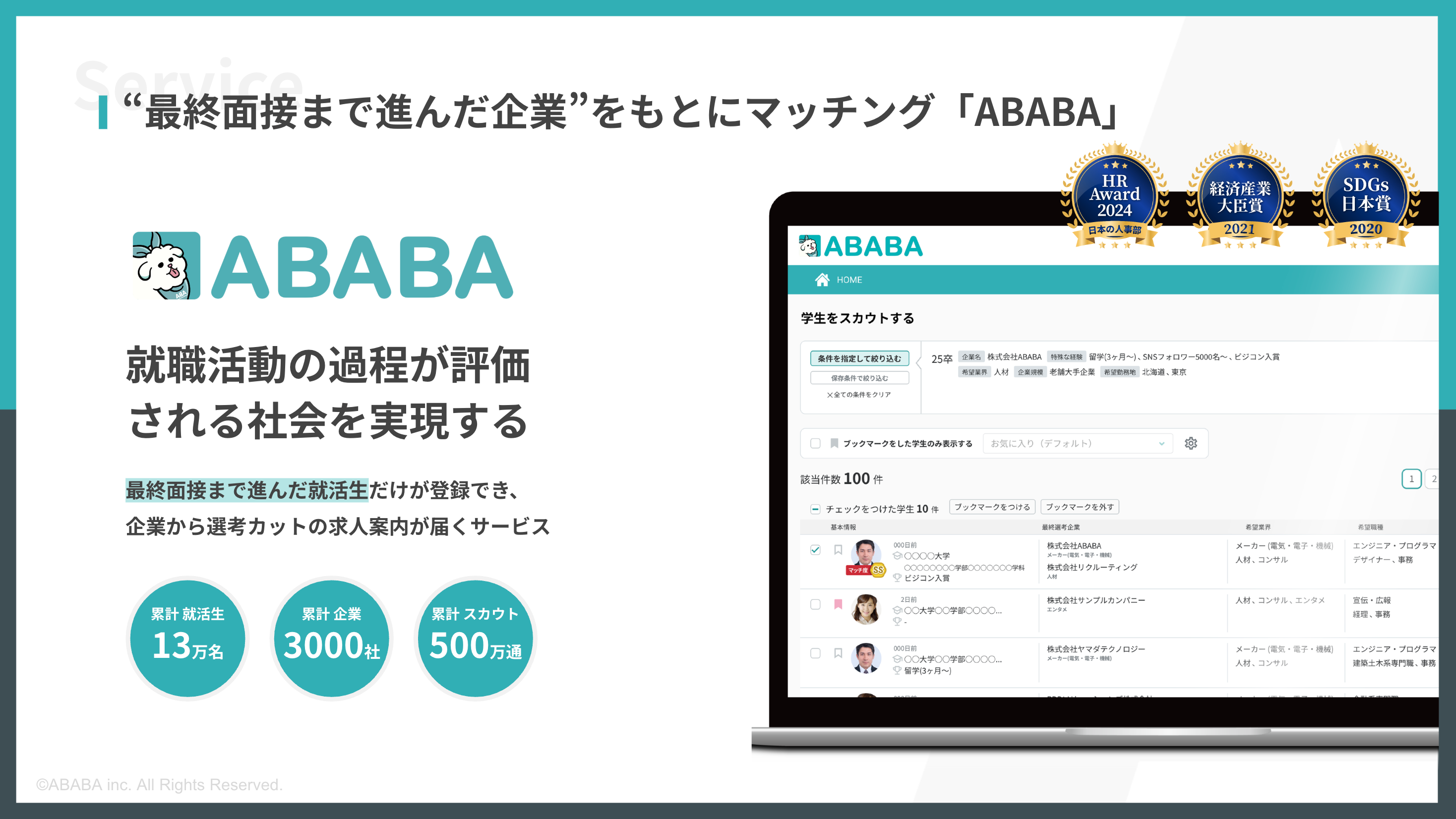 ■”就活の過程を評価する”新卒スカウトサービス『ABABA』
