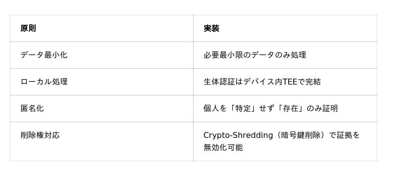 - 生体データはデバイス内のセキュアエンクレーブ(TEE)で処理