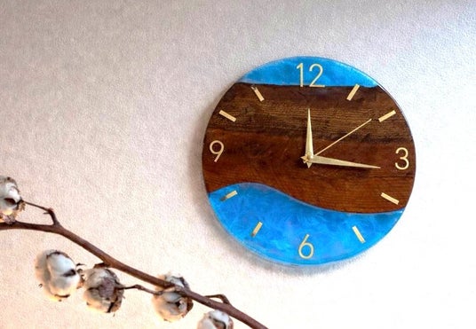 ケヤキ特有の力強い木目と、定禅寺通のイルミネーションや新緑をイメージしたレジンアートを融合。世界に一つだけの表情を持つ時計です。
