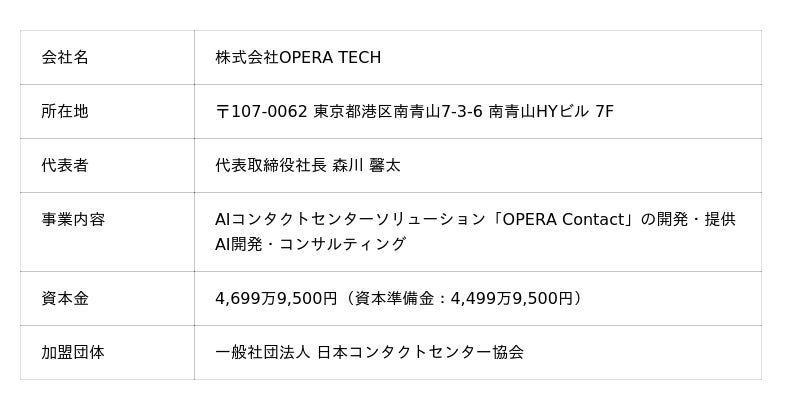 OPERA TECHでは、金融業界・通信業界・インフラ業界をはじめとした、大規模なコンタクトセンターを有する大企業への本格実装・導入が進んでおります。今回の資金調達により、プロダクト開発体制および導入支援体制を強化し、慢性的な人手不足、コスト増大、応対の属人化といった、コンタクトセンター業界が抱える構造的課題の解決に貢献してまいります。