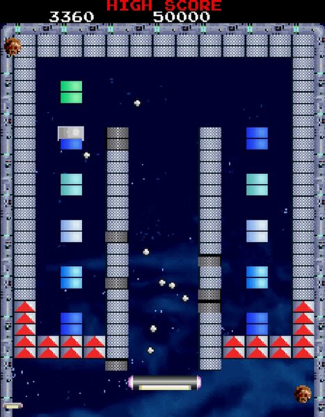 『クエスター』 は、1987年にナムコ(現:バンダイナムコエンターテインメント)から発売されたブロックくずしゲーム。宇宙船ハインダーを操作し、行く手を阻む謎の宇宙生命体ブリーダー(ブロック)を倒しながら、地球へ無事に帰還することがゲームの目標だ。