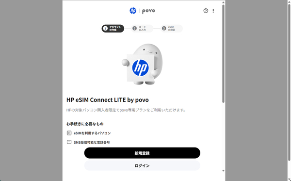 実際に利用するには開通の手続きが必要。ブラウザーで「HP eSIM Connect LITE by povoポータル」にアクセスし、画面の指示に従ってユーザー情報などの登録を行なえばいい。また、「ギガぞうWi-Fi」という、全国の主要カフェチェーンやコンビニなどで利用できるセキュアなWi-Fiサービスもセットになっている。