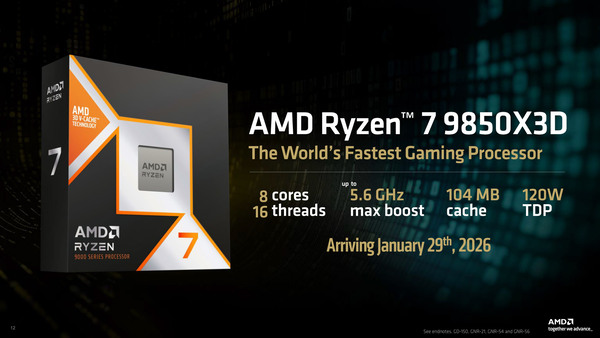 しかし9950X3Dは3D V-Cacheが8コア分しかないという仕様上の制約があり、これが地味にゲームパフォーマンスの足を引っ張ることがある。その点Ryzen 7 9850X3Dはゲームでも確実に3D V-Cacheが使えて速い。特定用途特化ならRyzen 9 9950X3D、汎用性ならRyzen 7 9850X3Dがオススメだ。
