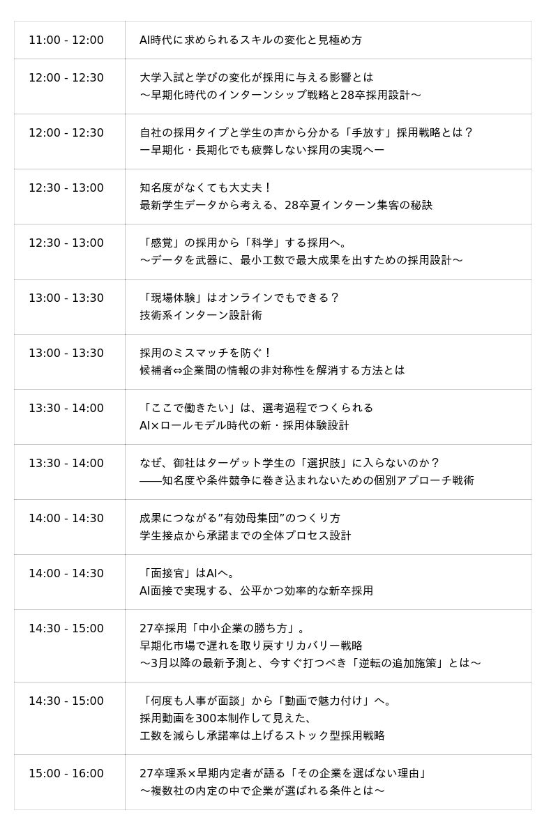 - 27・28卒の採用施策に携わる新卒採用担当者様