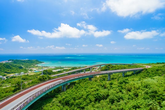 コバルトブルーの太平洋と神の島「久高島」を一望できるニライカナイ橋