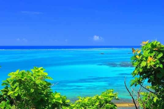 知念の海。エメラルドグリーンからコバルトブルーへ