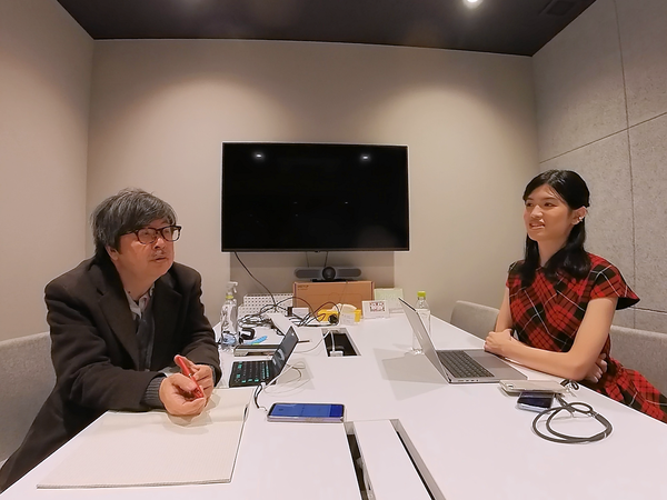 AIとソフトウェア開発、そしていまの取り組み。大塚さんのこの1年の取り組みを中心にお話を聞いた(左は筆者)。