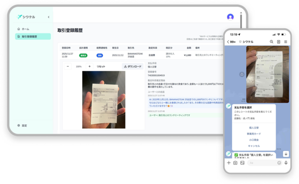 レシートの経費処理をチャットで完結、AIエージェント「シワケル」提供開始 小規模事業者などの経理業務を支援
