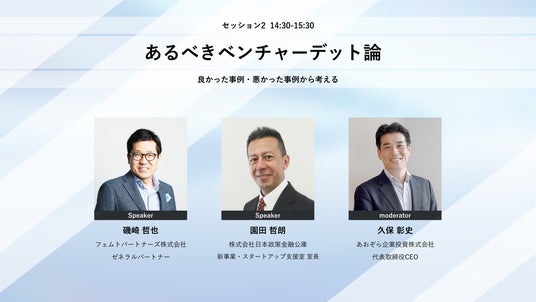 その役割・利用シーンが拡大しているベンチャーデットですが、本セッションでは、具体的に寄せられている"実際に利用してみてのポジティブ、ネガティブな声"を、スタートアップ、VC・株主、ベンチャーデットレンダーそれぞれの立場で掘り下げ、これからの”あるべきベンチャーデット”を展望します。
