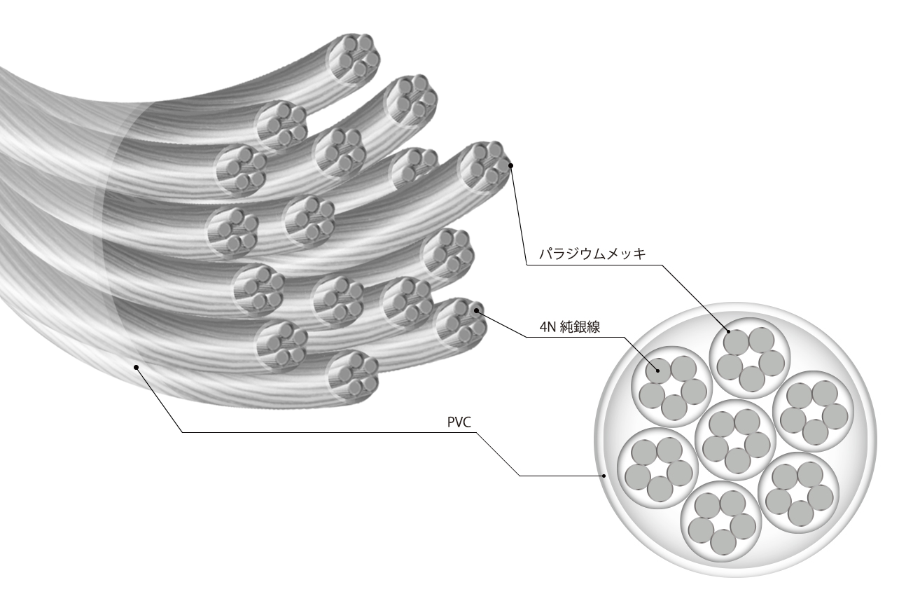 高い表現力と優れた解像度で音の輪郭を美しく際立たせる4N純銀パラジウムメッキ線を採用。