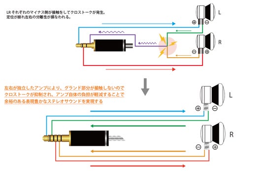 バランス接続は、プレイヤーのLRそれぞれ独立したアンプを使用することで、クロストークが極限まで抑制され、より正確な定位感と空間表現を可能にします。