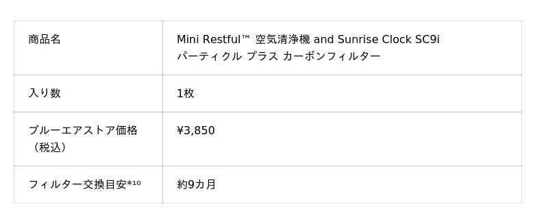 ■Mini Restful(TM) 空気清浄機 and Sunrise Clock SC9i 製品仕様