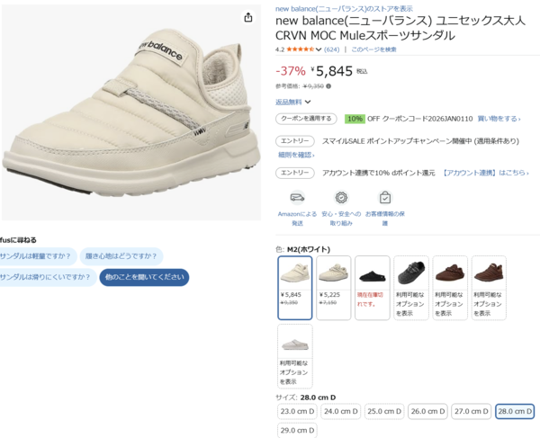 なお、Amazonでは本日(1月27日)より2月2日まで「AmazonスマイルSALE」を実施していますが、ニューバランスのCARAVAN MOC MULEは、これとは関係のない割引のようです。そのため、割引が実施される期間は未定です。