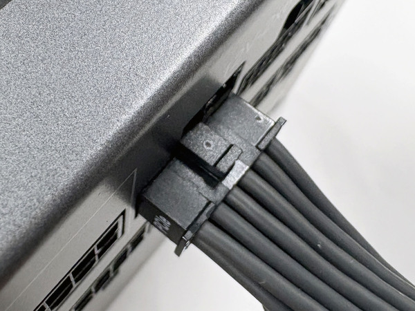 なお、そのほかのケーブルはフラットでもなくスリーブでもない、1線ごと分かれたバラになっている。最近はフラットケーブルを採用するものが多いが、フラットケーブルは配線の際に曲げやすい一方でねじるのが難しい。SL-Pのバラケーブルは曲げやすいとして、ねじる概念がないのでPCケースの縁のようなところでも配線しやすい。