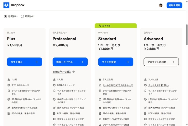 Dropboxを使い始めるにあたって、まず考えなければならないのが料金プランの選択です。