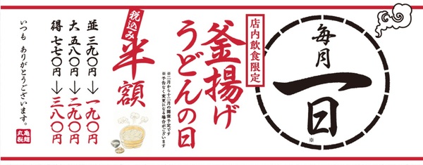 讃岐うどんチェーン「丸亀製麺」は、本日2月1日に「釜揚げうどんの日」を開催します。