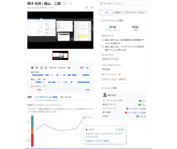 「たとえば『上司を出せ!』『馬鹿野郎!』などの怖い言葉や汚い言葉が出てきた、感情分析からお客さまが怒っていることが分かった、あるいは極端に長引いているなど、カスハラの兆しが見られる通話はリアルタイムにリストアップされます。まだテスト導入の段階ですが、管理者がこれを見て、素早く対応できるようにしたいと考えています」