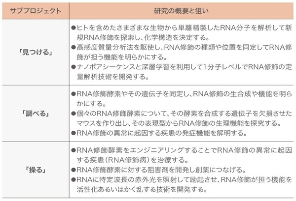 図2 鈴木RNA修飾生命機能プロジェクトの概要。