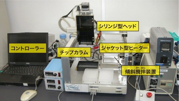 図4 微量のRNAを精製するために独自に開発した全自動往復循環クロマトグラフィーのシステム。RNA修飾の研究を迅速に進めるべく工夫をしている様子がうかがえる。