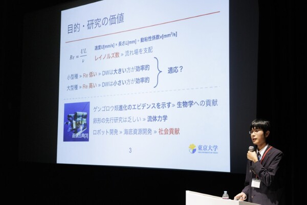 「現在生息しているゲンゴロウの形態には何らかの適応や機能があるはず」という思いで研究を始めたという宮嶋櫂(かい)さん。「好きな昆虫の進化を調べたいと思った時に、生物学的なアプローチだけではなく数値化して証明したいと思いました。学校でさまざまな研究を進める中で、ゲンゴロウがどのように進化してきたかシミュレーションする際に流体力学を活用できるのではとひらめきました」。しかし、数学とプログラムコードの知識が必要で、高校の授業や独学では限界があったため、東京大学が実施するSTELLAプログラムの企画「UTokyoGSC-Next」に参加した。