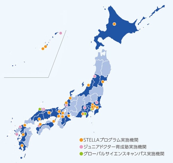 STELLAプログラムと、その前身の「グローバルサイエンスキャンパス(GSC)」「ジュニアドクター育成塾」は、各地の大学や高等専門学校など全国38機関で実施中だ。機関によって、文理融合教育を展開するものや情報分野に特化したもの、小中高生が一堂に会して学び合うものなどさまざまな取り組みがあり、原則居住地に関係なく応募が可能となっている。
