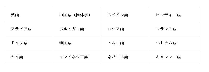 日本語以外の16か国語が入出力の言語として設定可能になりました。これにより、外国籍の従業員の方でも母国語で入力すると、その言語で結果が表示されるようになります※1。