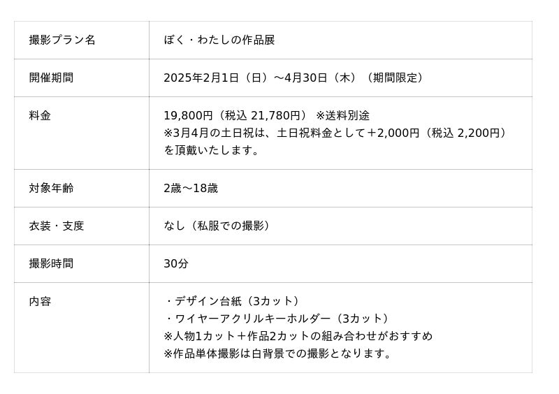 「ぼく・わたしの作品展」キャンペーンページ内、ご予約ページからご予約可能です。