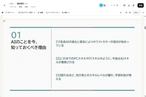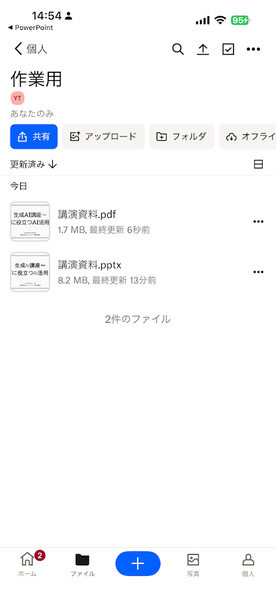 モバイルアプリでは、画像や動画、音声、さらにはWordやPDFのドキュメント、PowerPointのプレゼンといったものまで、幅広いデータをアプリの中で表示(プレビュー)できます。たとえば、PCで作り込んだプレゼン資料の内容を移動中にスマホで確認したいときに、スマホにPowerPointのアプリが入っていなくても、それができるわけです。