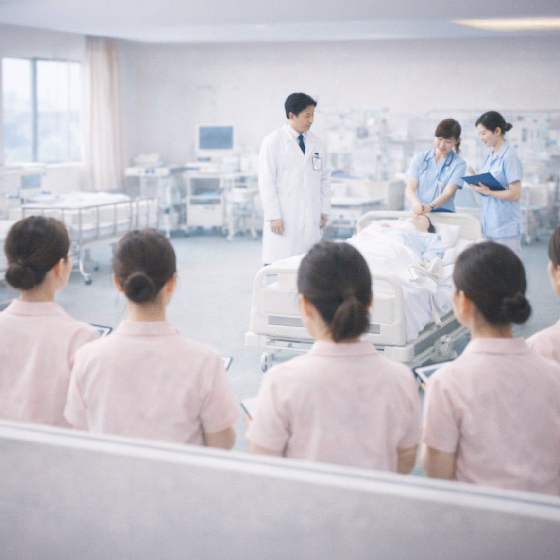 |<看護実習> 医療機器に影響しない安心通話静かな環境を保ちながら、全体に案内や指導を行いたい──。