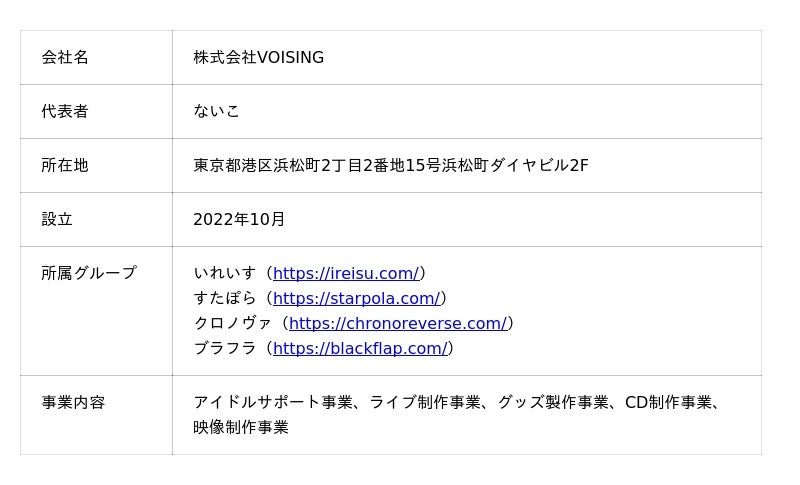 株式会社VOISING(本社:東京都港区、代表者:ないこ、以下、VOISING)は、本日よりVOISINGの各種サービスを一つのアカウントで利用可能にする新アカウントサービス『VOISING ID』の提供を開始したことをお知らせいたします。これに伴い、ファン同士やタレントとの新たな交流を生むコミュニティサービス『VOISING CONNECT』の発表、および既存のいれいすファンクラブ『いれらぶ』のリニューアルをお知らせいたします。VOISINGはこれらのサービスを通じて、ファン一人ひとりの「推し活」体験をより豊かに、より便利に進化させてまいります。