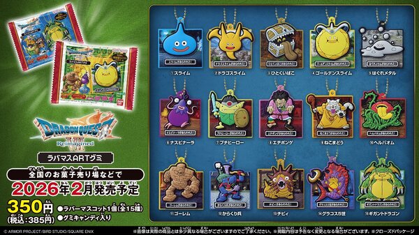 バンダイキャンディ事業部の食玩シリーズ「ラバマスARTグミ」より「ドラゴンクエストVII Reimagined ラバマスARTグミ」が登場。本作に登場するモンスター15種がラインナップされる。背景からモンスターが飛び出て見える3層構造で、精密な造形とカラフルな色彩で表現されている。グミはビバ=グレイプ味(ぶどう味)だ。