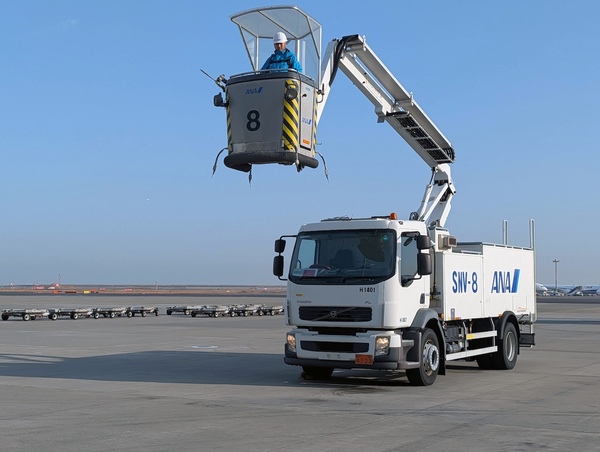 冬の空港で安全を守る守護神です。アームの先にゴンドラやノズルがついており、機体に積もった雪や氷を取り除いたり、凍結防止液(防除雪氷液)を散布したりします。翼に氷がついていると揚力が得られなくなるため、冬場の安全運航には欠かせない存在です。