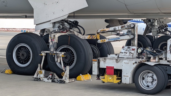 航空機のタイヤは巨大で非常に重いものですが、この車両はそれを交換するための専門車両です。