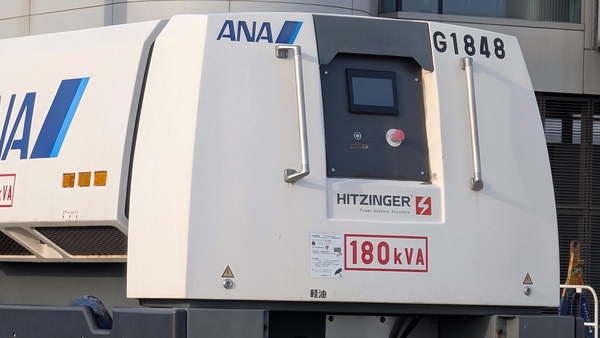 駐機中の飛行機に、電気を供給するための「移動式発電所」です。飛行機はエンジンを止めている間、機内の照明や空調、計器類に必要な電気を外部から受け取る必要があります。