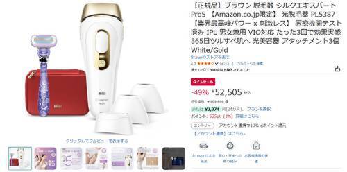 ブラウンの光脱毛器「シルクエキスパート Pro5(PL5387)」が、Amazonのタイムセール対象になっています。過去価格103,800円のところ、49%オフの52,505円で販売中です。