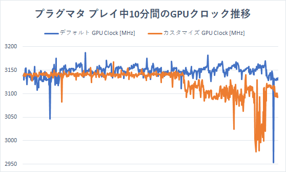 | プラグマタプレイ中10分間のGPUクロック | ||
