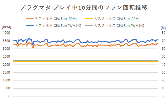 | プラグマタプレイ中10分間のファン回転数 | ||||