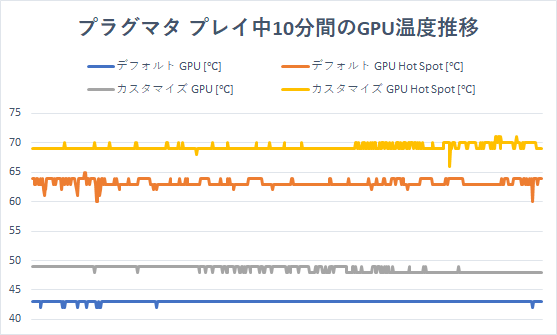 | プラグマタプレイ中10分間のGPU温度 | ||||